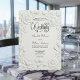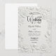 Bestimmen Sie den Ton für Ihre formelle Vereinigung mit diesem klassischen Design, das einen gedruckten Faux-Basrelief-Effekt aufweist, der das Aussehen von gesculptetem Gips imitiert. Dieses Design fängt die Essenz der Regency-Ära durch eine fortschrittliche "Weiß auf Weiß"-Palette ein. Das Kunstwerk zeigt eine digitale Reproduktion einer barocken Skulptur, die einen Engel zeigt, der Violine spielt, umgeben von einem Rand aus großen blühenden Rosen, in Creme-, Beige- und Softgrautönen, um einen überzeugenden 3D-Schatteneffekt zu erzeugen. Der Text wird in scharfer schwarzer formaler Kalligrafie mit dekorativen Herz-Verzierungen für hohen Kontrast und Lesbarkeit präsentiert. Dies ist ein flaches gedrucktes Bild mit einem Faux-Prägeeffekt, nicht tatsächliches erhöhtes Material oder tatsächliche Textur.