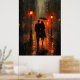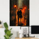 Genießen Sie den Charme eines romantischen Spaziergangs unter dem Regen mit diesem hübschen Kunstwerk. Mit einem Paar, das unter einem Schirm inmitten leuchtender Straßenbeleuchtung spazieren geht, ist es ein zeitloses Stück, das sich perfekt für Valentins Dekoration, Jubiläen oder als herzliches Geschenk für Liebende eignet.