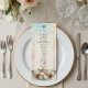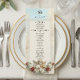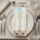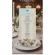 Versetzen Sie Ihre Gäste mit diesem klassisch inspirierten Design in eine Ära zeitloser Romantik, das perfekt ist, um den Ton für Ihren formellen Empfang zu setzen. Dieses Design zeigt eine hochdetaillierte, klassische Komposition, die um einen antiken Cherub zentriert ist, der Violine spielt und in einem Pseudo-3D-Reliefstil dargestellt ist, um das Aussehen geschnitzter Skulpturen zu simulieren. Das Kunstwerk ist vor einem gedruckten Pseudo-Marmorhintergrund in sanften Elfenbein- und Beigetönen gesetzt und von filigranem Spitzenornament gerahmt. Tiefe karmesinrote Rosen und salbeigrüne Blätter bilden einen reichen Kontrast zur antiken Goldfarbenpalette. Der Kopfbereich zeigt "Bon Appetit" in eleganter Kalligrafieschrift über einem traditionellen Servierglocken-Symbol.