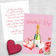 Romantischer Valentinstag mit Champagner und Rose Karte