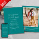 Aquamarine Blätter, Handgeschriebenes Stilskript, Foto, qr-Code für uAwg, Einladung zur Hochzeit.