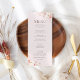 Lassen Sie Ihren Empfang mit unserem romantischen, blassrosa Rosen-Hochzeitsmenü höher schlagen. Dieses exquisite Stück besticht durch seine Eleganz, mit einer traumhaften Darstellung von blassrosa Rosen, die die zart gezeichneten Menüdetails umrahmen. Die sanften, romantischen Farbtöne von Rose und Rose erinnern an eine zeitlose Eleganz, die die Bühne für ein unvergessliches kulinarisches Erlebnis bildet. Jede Speisekarte ist ein Beweis für den raffinierten Geschmack und ergänzt die Ästhetik Ihrer Hochzeit mit ihrem ätherischen Blumendesign. Mit diesem bezaubernden und personalisierten Hochzeitsmenü erhalten Sie einen bleibenden Eindruck bei Ihren Gästen, die das sorgfältig gepflegte Angebot Ihres Festes verfolgen.