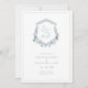 Romantisches Blumenblauer Foto Save the Date. Diese romantische und stilvolle Hochzeit bewahrt die Datums-Ankündigungskarte mit schönen handbemalten Aquarellblumen auf einem Wappen | Kranz mit "Save the Date" in einem eleganten Skript. Auf der Rückseite der Einladung befindet sich ein skurriles Muster, das aber nach Belieben leicht gelöscht werden kann. Suchen Sie passende Elemente in der Dusty Blue Mit Monogramm Wappen Collection.