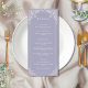 Romantisches französisches Lilac Hochzeitsmenü Menükarte