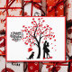 Feiern Sie die Liebe mit dieser eleganten Valentinstag-Postkarte mit einer romantischen Silhouette eines Ehepaares unter einem Herzbaum. Ein spielerischer Hund, der Ballons hält, fügt eine skurrile Touch hinzu, während die klassische "Happy Valentine's Day"-Nachricht das Design vervollständigt. Ideal, um Ihre Lieblingsstimmung zu äußern oder Liebe mit Freunden und Familie zu teilen.