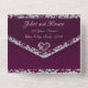 Dieses romantische Design besticht durch einen dunklen lila (pflaumen) Hintergrund mit Glitzer-Rändern, einem zarten silbernen Scrollherz und einem Drehbuch in eleganten Schriftart. Ideal für die einfache bis elegante Hochzeit. Auch erhältlich mit verschiedenen farbigen Hintergründen für Ihre Hochzeit Thema Farben. (Glitzer wird im Kunstwerk simuliert). Entworfen, um sich mit der Kollektion "Romantische Scroll Herts & Glitzer Wedding" abzustimmen. Um Details zu ändern, klicken Sie auf "Personalisieren". Um den Text zu verschieben oder die Textgröße, den Schriftart oder die Textfarbe zu ändern, klicken Sie auf "Klicken Sie, um den Text weiter anzupassen".