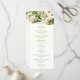 Schönes, romantisches Hochzeitsprogramm mit weißen Rosen und grünem, elegantem Schriftart.