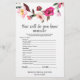 Dieses romantische Märchenspiel "Kennen Sie die Braut" ist perfekt für ein englisches Gartenthemenspiel Brautparty. Auf der Vorderseite der Spielkarte steht "Wie gut kennst du die Braut" und auf der Rückseite der Karte steht "was in deiner Handtasche ist". Das Design besteht aus rosa, pfirsichfarbenen und lila Aquarellfarben-Rose und Pfannkuchen, die in einem farbenfrohen Blumenrahmen angeordnet sind. Personalisieren Sie die Kartenvorderseite mit dem Namen der Braut und dem Brautparty. Entworfen mit Pflege von Miriam bei Fresh & Yummy Paperie. Für die Koordination der Artikel besuchen Sie bitte meinen Zazzle-Laden: