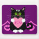 Mousepad mit einer sehr niedlichen Katze, ein Herz mit Text zeigend. Dieses Produkt kann besonders angefertigt werden, indem man die Hintergrundfarbe und/oder -text ändert.