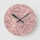 Romantisches Muster mit Herzen und Vögeln Runde Wanduhr