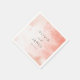 Dieses Hochzeitsservietten-Design zeigt einen weichen, aquarellartigen Hintergrund in zarten rosa und weißen Farbtönen, der einen ätherischen, wolkenähnlichen Effekt erzeugt. Das Layout ist zentriert mit eleganter Typografie und kombiniert saubere serifenlose Schriftarten für die Namen und eine zarte kursiv geschriebene Schrift für "und", was den romantischen Charme verstärkt. Der minimalistische Stil betont Einfachheit und Klarheit und macht ihn perfekt für intime Feiern. Die ruhige Stimmung und die sanfte Farbpalette rufen eine zeitlose und traumhafte Atmosphäre hervor, ideal für besondere Anlässe wie Hochzeiten.
