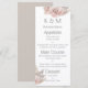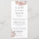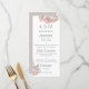 Dieses elegante und romantische Menü besticht durch ein Blumendesign. Rosa Rosen und bohfarbene Blätter beleuchten die obere rechte und untere links Ecke. Sie können die Menüpunkte durch die Menüoptionen Ihrer Wahl ersetzen. Es eignet sich für ein Frühstück, einen Brunch, ein Mittag- oder Abendessen, für eine Hochzeit oder ein Bankett.