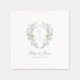 Elegante Hochzeitsnapkins mit atemberaubendem, weichblauen blumenblauen Hochzeitsmonogramm-Wappen und klassischer Kalligraphie.