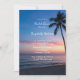 Eine atemberaubende Sonnenuntergangsszene mit einem goldenen und lila Himmel, ruhigen Meereswellen und einer schwarzen Silhouette einer Palme auf der rechten Seite. Die warmen Farbtöne reflektieren das Wasser und schaffen eine romantische und ruhige Atmosphäre - ideal für eine Hochzeitsreise.