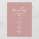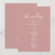 Dieses romantische, staubige Rosen-Hochzeitsprogramm verfügt über einen weichen, blassen rosa Hintergrund mit eleganter Schrift-Typografie und einem dezenten goldenen Herz-Akzent, wodurch ein raffiniertes und kohärentes Zeremonie-Andenken für Ihren Hochzeitstag entsteht.