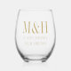 Diese modernen, minimalistischen, stemmlosen Weingläser machen große Brautparty Geschenke oder Gastgeschenke Hochzeiten. Sauberes minimales Design mit Ihren Initialen und Hochzeitsstadt in modernen neutralen goldfarbenen Serifenschrift. Ihr Hochzeitstermin in römischen Zahlen fügt eine schicke und unerwartete Touch hinzu.
