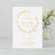 Eine traditionelle, klassische und elegante Olive-Filiale-Kranz-Einladung mit einem GOLD FOIL-Kranz und Hochzeitsschrift.