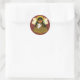 L'ange portant une colombe est si beau avec ses ailes en plumes ! Golds et bourgognes ornent cet autocollant personnalisable. Commandez-le en rond ou en carré.