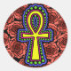 La cheville était l'ancien symbole égyptien de la vie. Il a été adopté par la contre-culture des années 1960 comme un symbole du spiritualisme, et un rejet du consumérisme et de l'establishment. Cet autocollant a une cheville jaune avec des détails violets, bleus et verts sur un arrière - plan de roses roses.