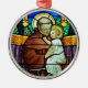 Un bel souvenir ou ornement contenant une image de St Anthony d'une conception de fenêtre en verre teinté.