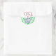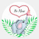 Ce mignon petit éléphant est sur un arrière - plan de feuilles de paume vert. Sur le bout de son tronc il y a un papillon rose. Le texte sur la carte dit : "Sois ma Saint-Valentin". Ces autocollants se coordonnent avec la "Baby Elephant And Butterfly Childs Valentine Card", pour les enfants. Il peut être utilisé sur l'enveloppe ou comme sceau pour les sacs-cadeaux.