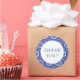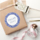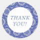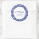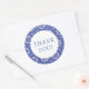 This wedding favor sticker features a "Thank You!" message, framed by a border with a Cobalt Blue & white palette and a Geometric star motif. It draws inspiration from Italian, Portuguese, & Spanish Azulejo and Majolica Tile art, evoking the Mediterranean coast for a timeless, classic aesthetic to seal your favors.