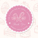 Boulangerie autocollant d'ustensile d'entreprise avec un arrière - plan rose et deux coeurs blancs.