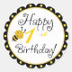Abeille de bosse douce avec cadre de bord de coquille Saint-Jacques Happy Anniversaire autocollant.