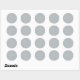 A circular sticker with a detailed geometric pattern of interlocking hexagons in gray. Below, a sheet displays 20 smaller identical stickers. The tone is modern and minimalist.