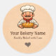Bakery logo sticker and Bakery brand name sticker featuring a friendly male chef holding fresh artisan bread. This small business bakery sticker is the perfect way to add a rustic and professional touch to your packaging. It works beautifully as a Bakery packaging sticker for bread bags, pastry boxes, and homemade treats.