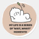 Elevate your stationery game with this aesthetic doodle cat sticker. Featuring a minimalist white cat and the funny, relatable quote, "My life is a series of 'Wait, what?' moments!", this sticker is perfect for adding personality to your belongings.