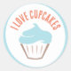 Un autocollant mignon avec un cupcake dessus et texte personnalisable pour votre emballage de boulangerie de cupcake et les promotions.