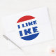 Autocollant rond avec l'image d'un bouton de campagne présidentielle pour Dwight D. Eisenhower. Voir la balise de faveur correspondante. Voir l'ensemble de la collection Nifty les années 50 Sticker en INVITATION | Section Stickers & Étiquettes.