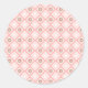 Round sticker design featuring pink and white plaid pattern with small floral motifs across the surface. Below, a sheet shows multiple stickers with the plaid pattern.