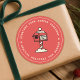 A stylish round Christmas gift sticker featuring a North Pole snowy mailbox illustration and the wording “Straight From Santa’s Workshop - Special Delivery For [Name]” in soft red with cream typewriter-style typography. Surrounded by a single circular border, this cool retro-inspired design captures the charm of vintage holiday mail with a modern minimalist twist. Perfect for adding a fun, nostalgic touch to children’s gifts, festive packages, or holiday mail, this trendy label combines playful Christmas spirit with stylish design. A warm and whimsical finishing touch that makes every present feel truly magical.