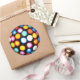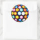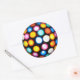 Autocollant rond avec image de lumières colorées émanant d'une boule de disco. Voir collant vinyle taillé sur mesure, confetti, sac de faveur, étiquette préférée et papier d'emballage. Voir toute la collection Disco les années 70 Sticker dans les INVITATIONS | Section Stickers & Étiquettes.