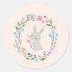 Un autocollant mignon avec un lapin et une illustration florale.