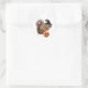 Un autocollant d'Halloween amusant avec un écureuil portant un casquette de sorcière noire tenant un tour jack-o-lanterne ou un seau à gâter.