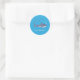 Un autocollant bleu mignon pour la fête d'anniversaire d'un enfant avec un dessin animé de requin nageant. Personnalisez-le avec votre texte et le nom de votre enfant. © ArianeC Illustrations-Tous droits réservés