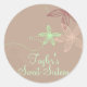 Ce sticker élégant personnalisable présente des fleurs rose et verte sur un arrière - plan marron. Customisez-le en ajoutant vos détails dans la police de votre choix !
