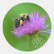 Cet autocollant présente une bourde d'abeille ramassant le nectar d'une fleur de chardon violet.
