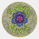 Un autocollant avec une marguerite psychédélique folle et les mots fleurissent puissance.