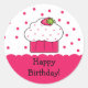 Rond Sticker d'anniversaire rose Cupcake
