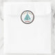 Un autocollant d'anniversaire sur le thème du camping avec une illustration d'un tipi turquoise et du bunting. L'Arrière - plan est d'inspiration bois. Personnalisez le texte. Recherchez les invitations correspondantes chez Jill's Paperie.