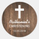 Rond Sticker de baptême de croix de bois rustique