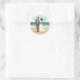 Comprend 20 petits autocollants sur une feuille. Un autocollant adorable avec un couple heureux en tenue mariage sur une plage sereine, parfait pour les mariages et les couples.