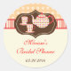 Autocollant de douche nuptiale moderne et chic. Comprend une théière et des tasses à thé avec des pois de différentes couleurs. Design tendance dans des couleurs vives. Utilisez-le pour des faveurs de fête ou pour sceller des enveloppes.