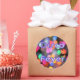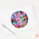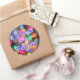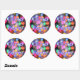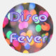 Autocollant rond avec une image de lumières disco de couleur arc-en-ciel et les mots "Fièvre disco" en lettres violet clair et foncé. Voir confettis assortis, ballotin, étiquette de faveur, sacs cadeaux et papier d'emballage. Voir toute la collection Disco les années 70 Sticker dans les INVITATIONS | Section Stickers & Étiquettes.