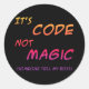 C'est Code Not Magic (quelqu'un dit à mon patron) - logiciel développement humour autocollant avec des lettres orange, rouge et violet sur un arrière - plan noir.