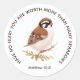 Cet autocollant rond présente un moineau mignon et un verset édifiant de la Bible de Matthieu 10:31. Cela ferait un merveilleux cadeau à quiconque a besoin d'encouragements. " N'ayez pas peur ; vous valez plus que de nombreux moineaux." Vous pouvez customiser et ajuster le texte dans une langue qui correspond à vos préférences.
